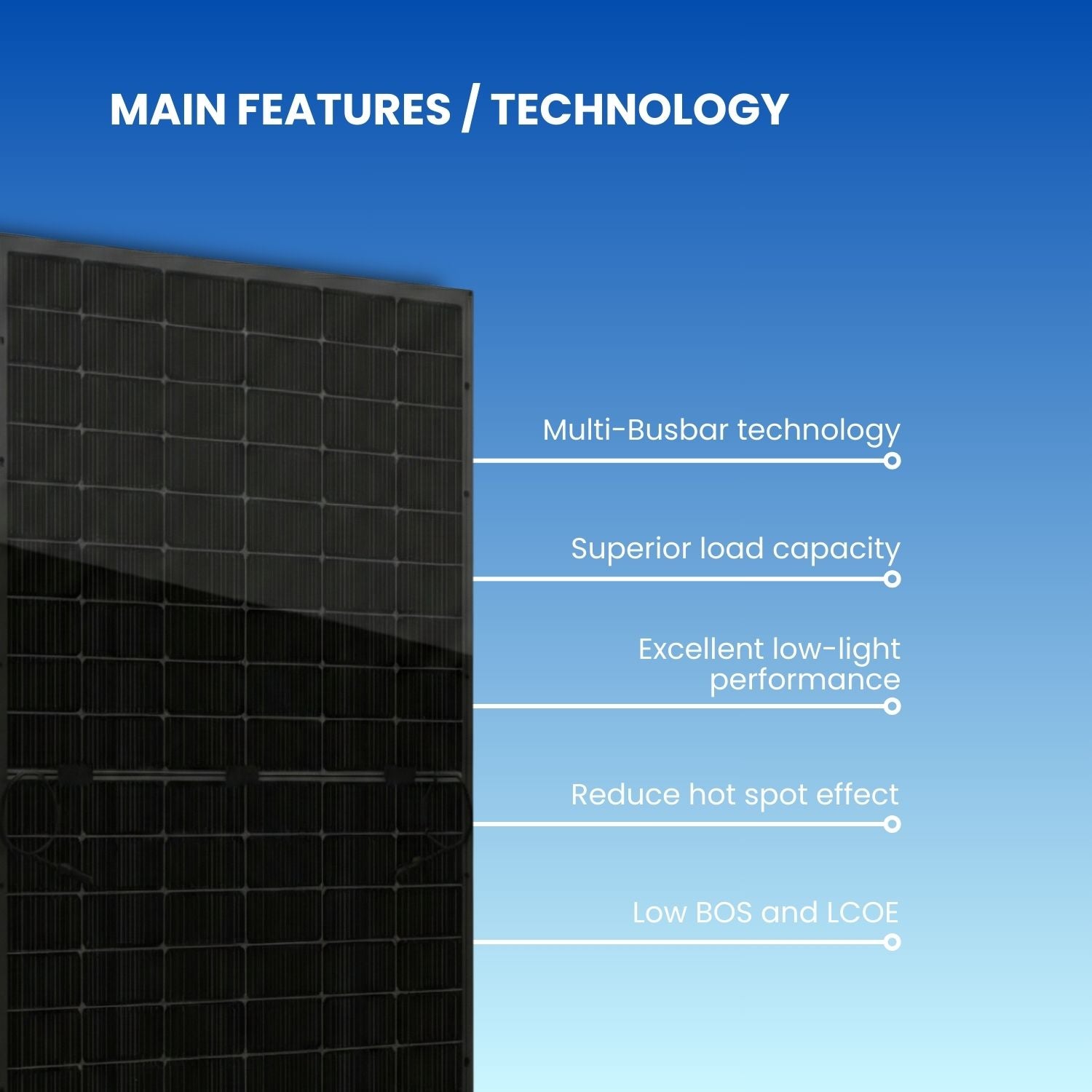 - Multi-busbar technology to reduce resistive losses and improve reliability